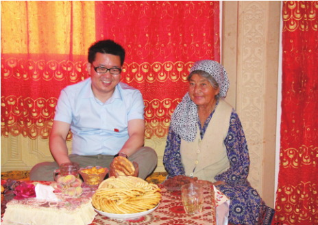 11月19日,南航新疆分公司副总经理侯俊学与结对亲戚布萨拉聊家常。郑京昶摄