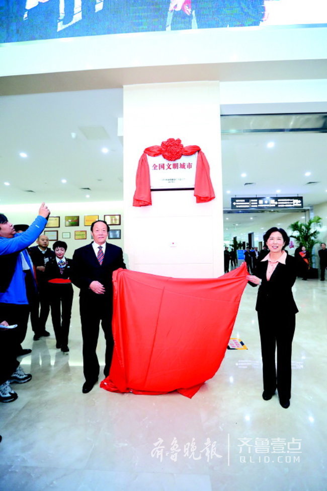 22日上午,济南市举办全国文明城市挂牌活动。11时许,济南市民巡访团团长辛安和济南裕园社区居委会主任刘云香一起,为文明城市荣誉牌匾揭牌,在这一次活动中当了一把绝对的“主角”,为文明城的牌匾揭牌,这是辛安和刘云香以前怎么也没想到的。这个荣誉牌匾,被挂在了济南政务服务中心大厅。