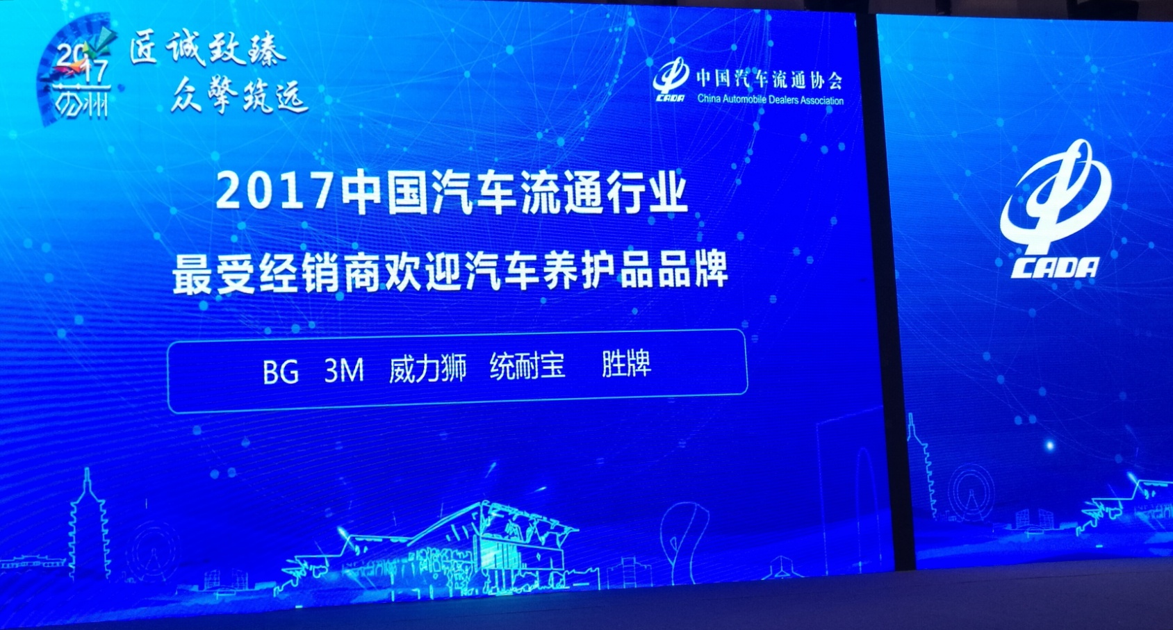 北京时间——2017年11月14日,由中国汽车流通协会举办的2017年汽车经销商最受欢迎品牌大会在苏州国家会议中心盛大召开, 美国BG荣获2017年汽车经销商最受欢迎养护品牌。
