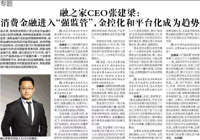 融之家联合创始人&CEO张建梁在会前接受采访时表示,自公司成立以来,先后打造了国内第一家互联网贷款搜索平台——借点钱APP,精准获客平台,消费信贷行业的“阿里云”——Fin-Cloud信贷云行业解决方案等一系列产品与服务。服务体系布局均围绕消费金融展开,旨在强化合作,解决各机构金融产品分布碎片化、触达不及时、流量与获客水平差异性问题,真正实现“金融赋能用户”这一现实命题。