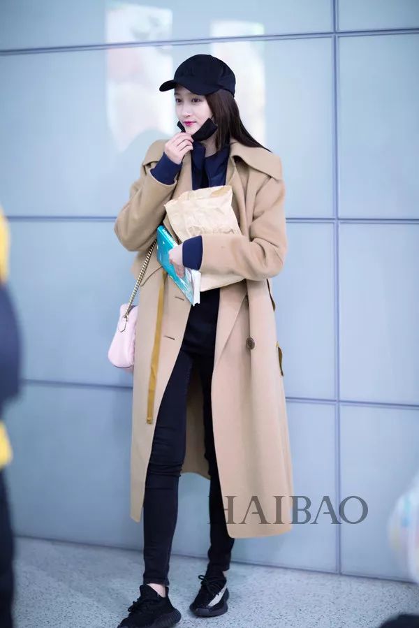 国民妹妹关晓彤示范驼色大衣+球鞋,帅气百搭只服她。