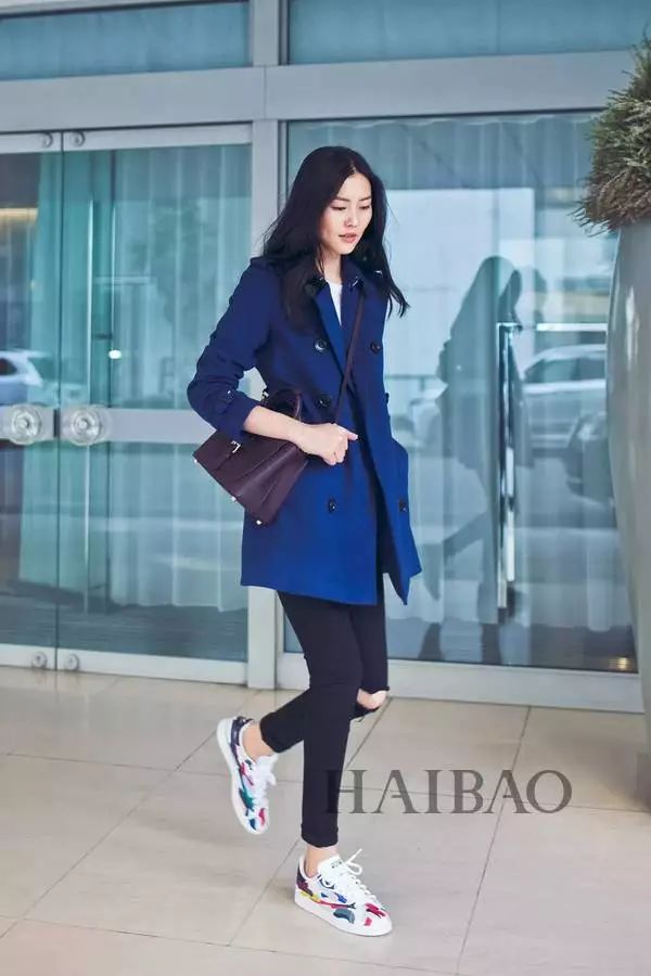 大表姐刘雯用蓝色大衣搭配印花球鞋,鲜亮的色彩显得格外瞩目,简直帅到爆!
