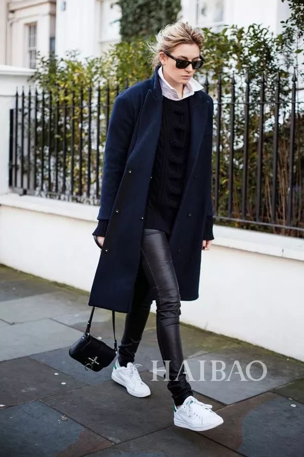蓝色大衣的低调优雅与球鞋简直就是不谋而合,落落大方地散发着个人魅力,轻松就能搭出好的品味格调。