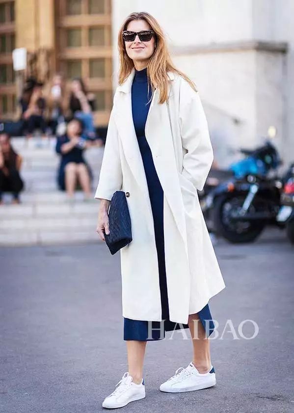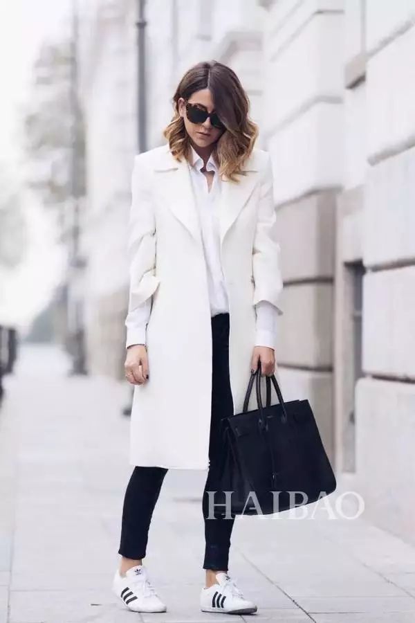 白色大衣+球鞋听起来就是一对美好的组合,纯净的白色代表美好与浪漫,一双简单的球鞋轻松又有腔调,很符合冬天的气质。