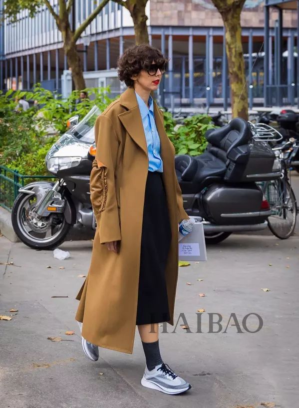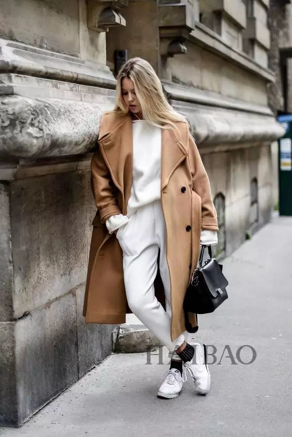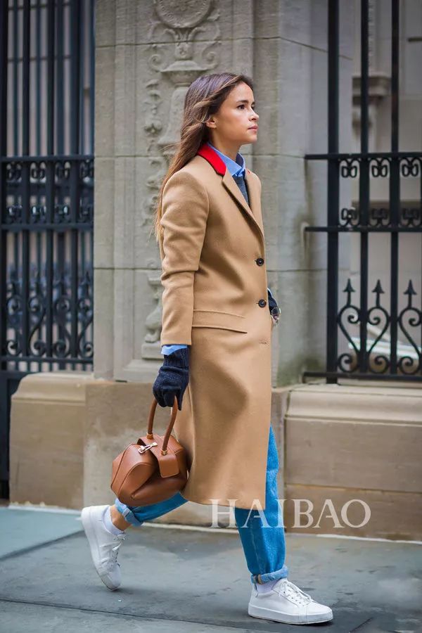 高衣品的时髦Girl选择大衣时通常都会选择经典又显气质的颜色,驼色大衣显然是成功的范例,既简约大气,又透着高级的时髦感,与轻快活泼的球鞋组合,让画面少了一份距离感,多了一份亲和力。