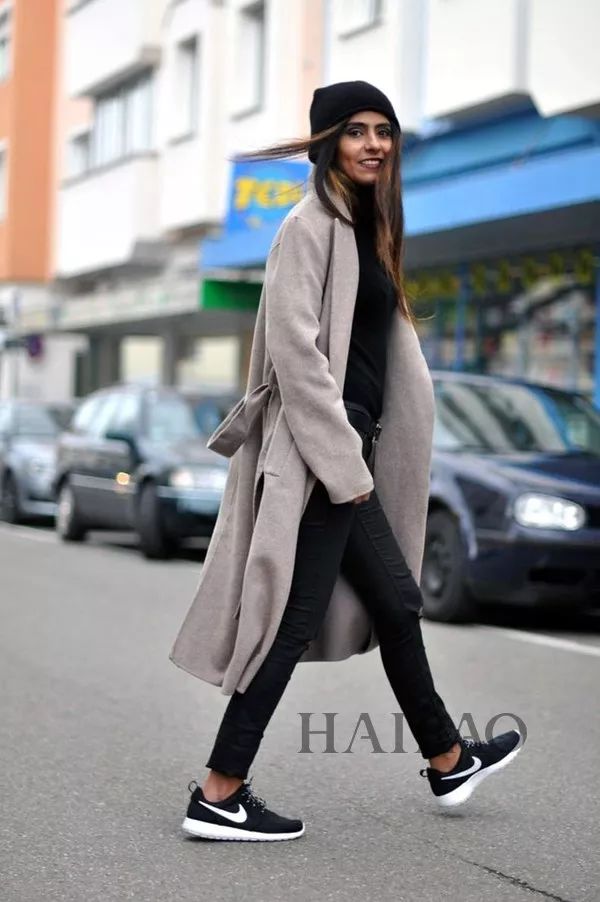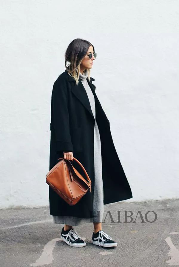 黑色大衣+球鞋
