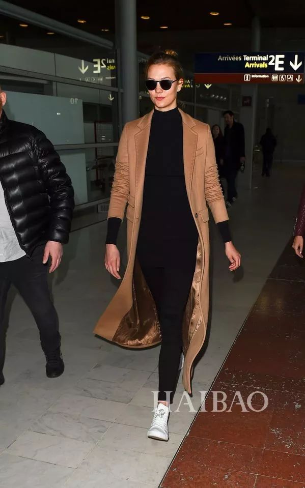 像驼色大衣这种经典色系,内搭建议还是选择简单的素色,小KK就是很好的例子,驼色+黑色简约大气,白球鞋则很好的补充了视觉效果。