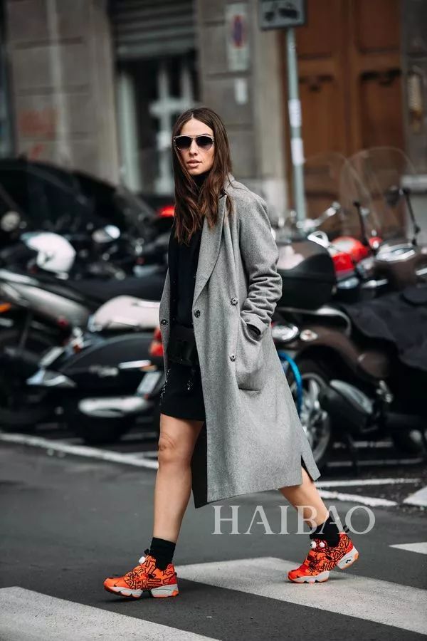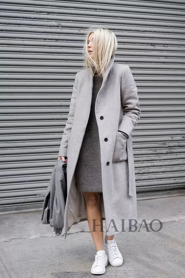 灰色大衣+球鞋