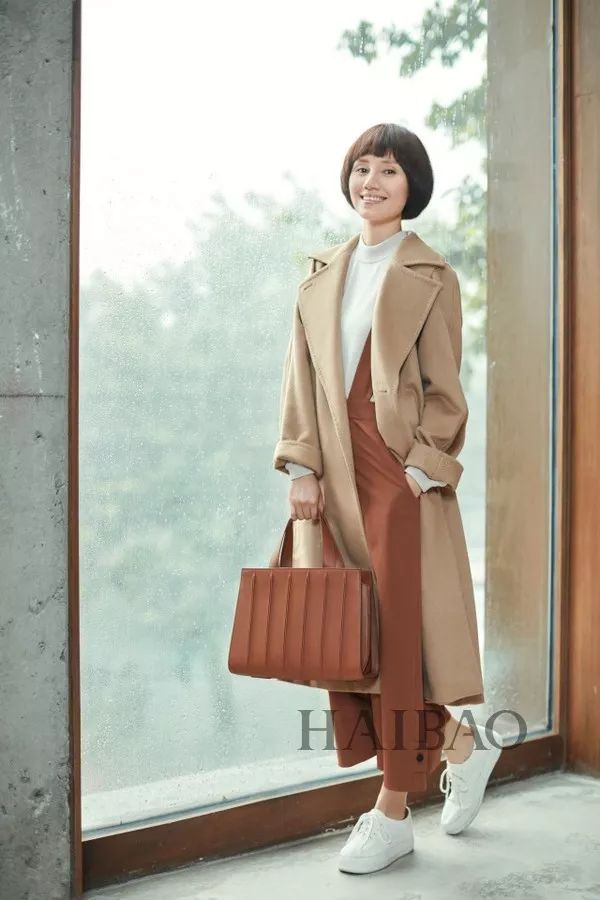 驼色大衣的典雅气场在可儿的映衬下显得十分完美,搭配运动鞋让整体造型更加的休闲。