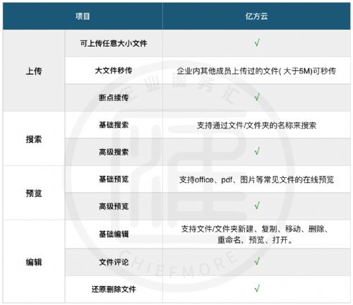今天,Chiefmore小编就为大家测评一下市面上主流的公司注册平台之一——亿方云。在阅读本文的过程中,如果您对文章中任何一个指标有疑问,也可以参见Chiefmore为您精心整理的:《企业网盘服务挑选指南》,里面有针对每一个指标的详细说明。
