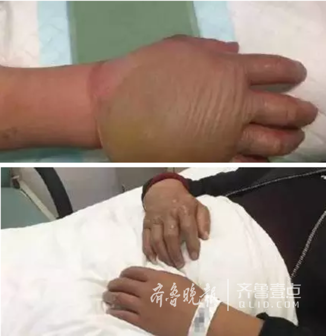 伤者手部灼伤严重,鼓起了巨大的水泡▲