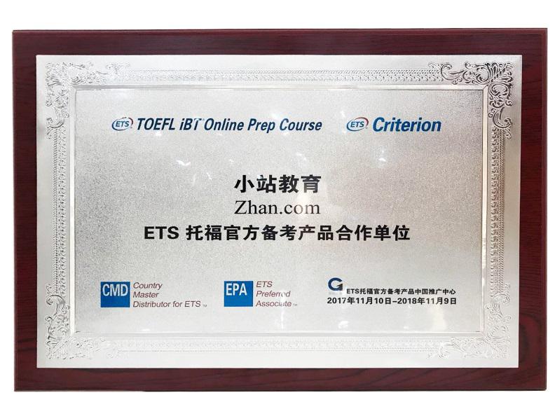 11月28日,全球领先的考试出题机构 - 美国教育考试服务中心(ETS)、国内领先的出国留学在线语言培训机构小站教育正式就引进ETS托福官方备考产品在小站教育上海办公室举行了授牌仪式。