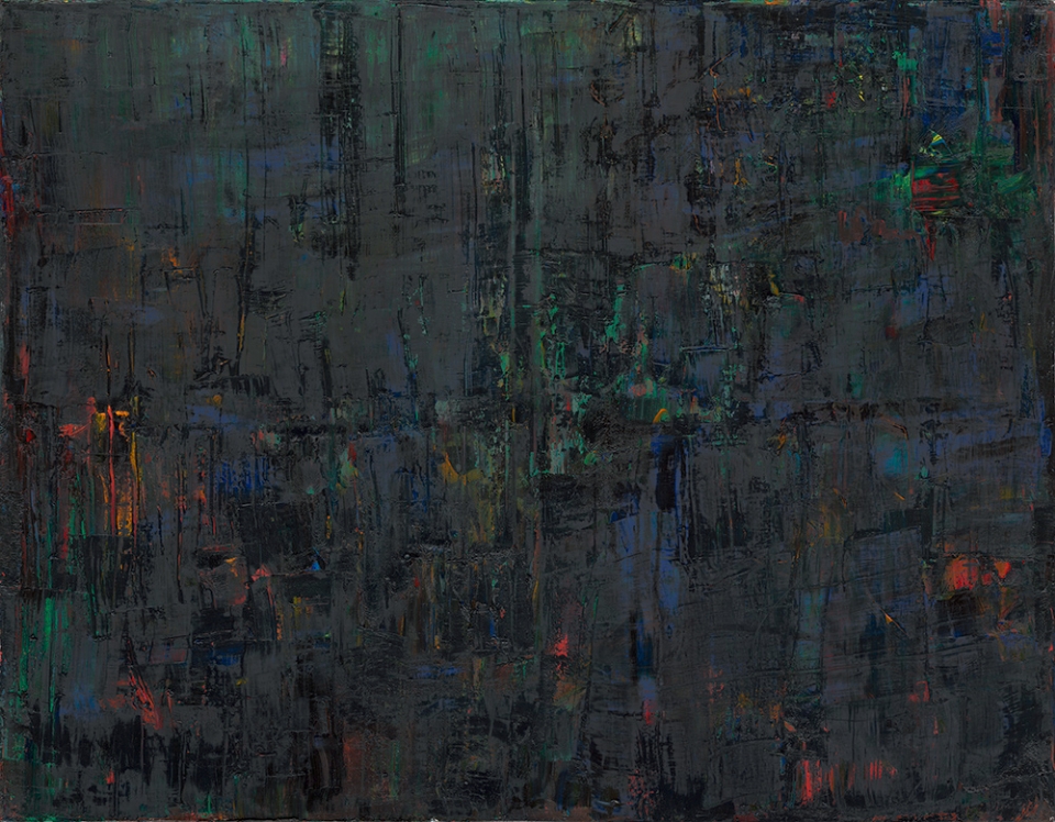 2015年以来的油画系列,王刚一方面极大发挥个人感性的力量,同时也达成丰富的色彩和多变的笔性。画面的色彩关系和视觉感受层次丰富又联结递进,多变的笔性因手的挥动而具有表情,并在“笔”、“手”和“心”的相应相生中,转化为“书写性”的画面落实。在新作品中,颜料堆积厚重,画面充满肌理和细节,而画面自上而下的色彩流淌,在随机和不确定之间,反映出画家跳动的灵性与联想的快意。