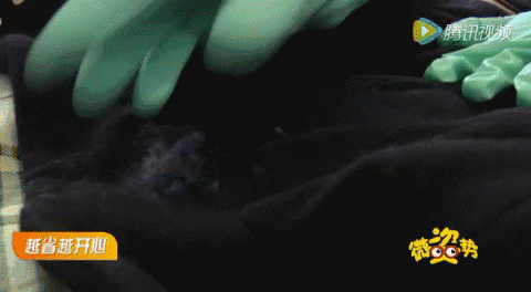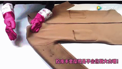 步骤二:用掌心摩擦粘毛的地方,橡胶手套的纹理是不会损害大衣的;