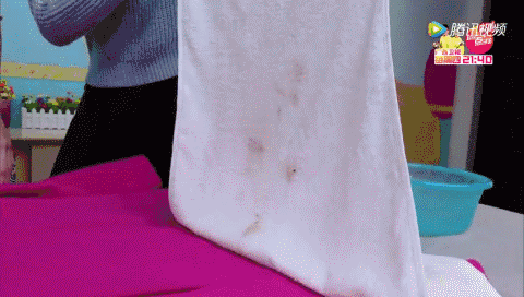 将盐按10:1的比例倒入清水中,用牙刷沾上盐水刷刷刷,注意盐水要达到足够的浓度哦!刷着刷着会发现,污渍不见了!