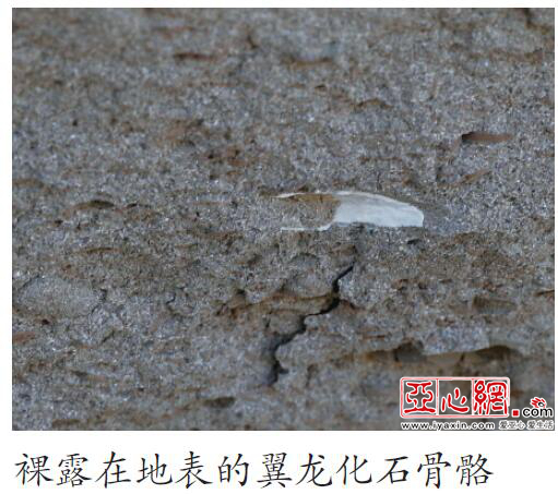 记者在现场看到,在几十米高的土丘上,每隔一段距离都会出现一层粗糙的岩层,仔细观察,岩层中有白色细长的骨头化石。参与研究的中国科学院大学博士生陈鹤表示,研究显示,这些化石富集在具砾屑的高能风暴沉积中。虽然骨骼化石分散保存,但每一块纤细中空的骨骼几乎都是完整的,细长的头骨牙齿和薄薄的头饰都与头骨或下颌关联且保存完好。