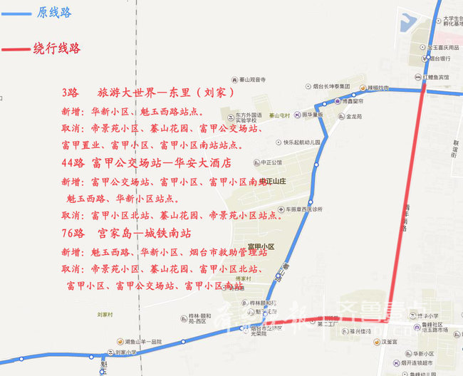 新增:富甲公交场站、富甲小区、富甲小区南站、魁玉西路、华新小区站点。
