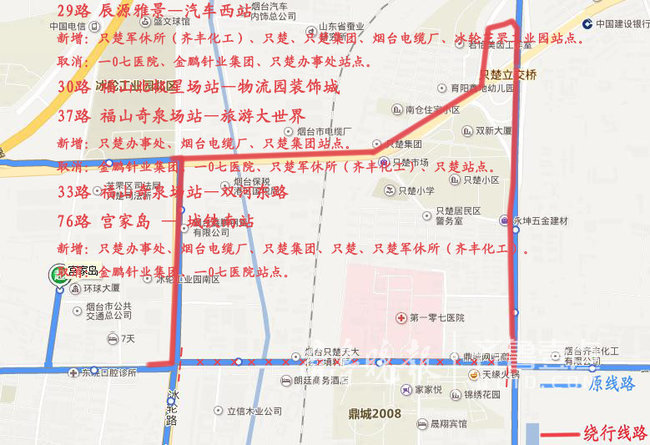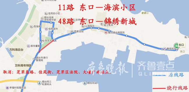 取消:芝罘岛路、佳苑街、芝罘区法院、大疃广场、楚凤二街、楚凤二街南口站点。