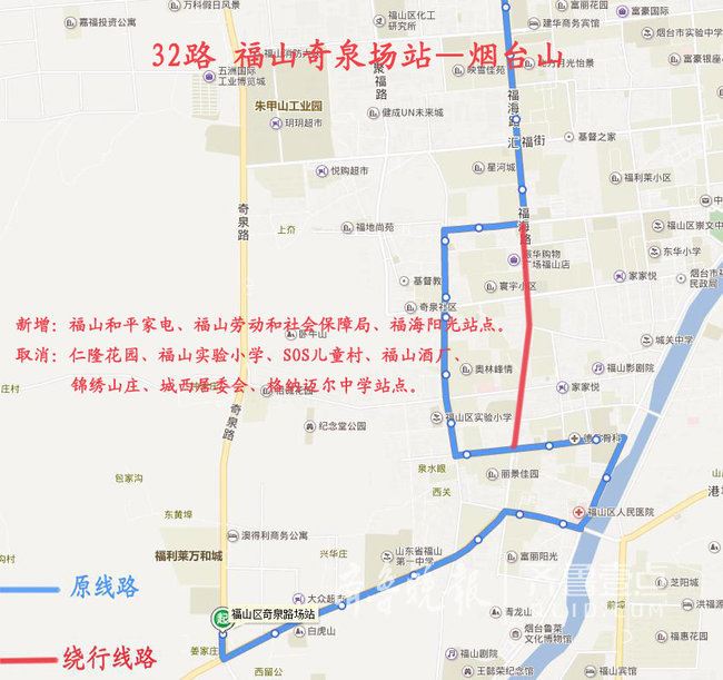 取消:仁隆花园、福山实验小学、SOS儿童村、福山酒厂、锦绣山庄、城西居委会、格纳迈尔中学站点