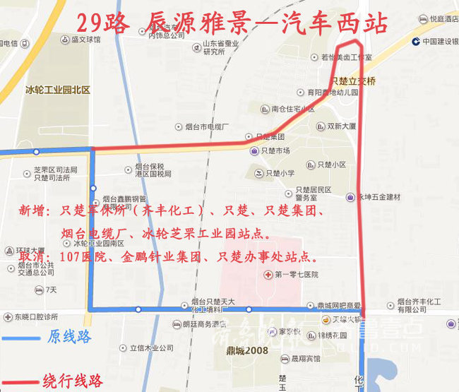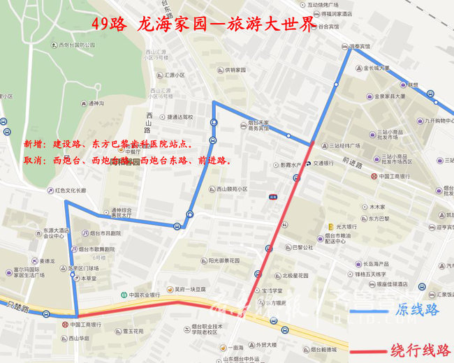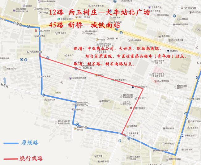 新增:方圆商场、中汇装饰材料市场、德蚨家园、烟台三站金桥广场、金泉家具大厦、东方巴黎齿科医院、建设路站点。