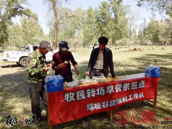 转场牧民在工作队流动早餐供应点就餐