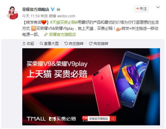现在,为了回馈广大消费者,以最优的价格打造理想生活方式,荣耀V9 play在直降100元的基础之上,推出下单再减100元的活动,3GB内存+32GB存储版本,到手价只要799元。同时,天猫荣耀官方旗舰店打出了“买贵必赔”的口号,如果你在天猫平台购买的荣耀V9 play比其他地方更贵,荣耀愿意赔偿差价。就冲着这个豪气,荣耀V9 play要定你了!