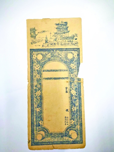 原标题:空白钱庄票上有手绘古黄鹤楼图案