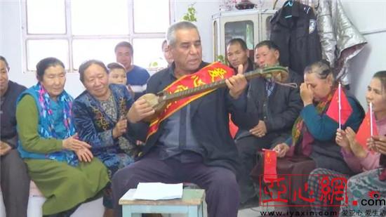 为了让村民深入了解十九大精神,塔城地区教育局驻乌苏市皇宫镇皇宫村访惠聚工作队组建了“爱心宣讲团”,用通俗易懂的语言、接地气的方式走村入户宣讲十九大精神。在“爱心宣讲团”的感染下,68岁的维吾尔族大叔吐尔逊·热西提也主动加入到了“爱心宣讲团”的队伍中,用弹唱热瓦普的形式宣传党的十九大精神。