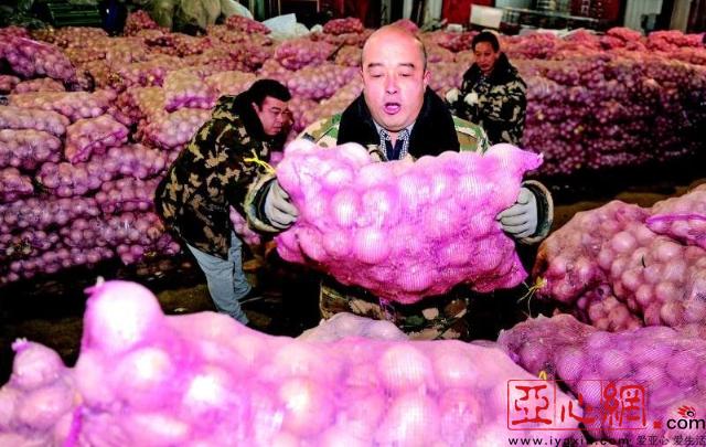 亚心网讯 (记者马元摄影报道)昨日,乌市沙区蔬菜直销点配送中心的乌鲁木齐市级储备菜专用库内,工作人员吕献平和同事堆放装袋洋葱。截至11月底,乌市已储备土豆、胡萝卜、青萝卜、洋葱、南瓜、冬瓜等数万吨过冬蔬菜,以保障乌市冬春蔬菜市场供应和价格基本稳定。