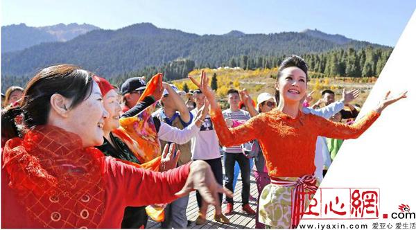 9月23日,为迎接十九大胜利召开,自治区党委宣传部、昌吉回族自治州党委宣传部和乌鲁木齐市委宣传部在天山天池举办了以“快乐的人群,闪亮的日子”为主题的“快闪”活动。记者加孜拉供图