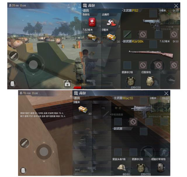 无论是PC吃鸡还是手机吃鸡,整理背包物资都是危险时刻,因为背包界面会挡住视野,这一点在手机吃鸡时体现的尤为严重,但如果屏幕越大被挡住的部分就会越小。通过对比,华为麦芒6极光蓝全面屏的优势再次得到体现,打开背包后还能显示接近一半的游戏视野,如此此时遇敌也能快速反应做出反击。反观普通屏幕打开背包后连角色都被遮挡,极大影响游戏体验。