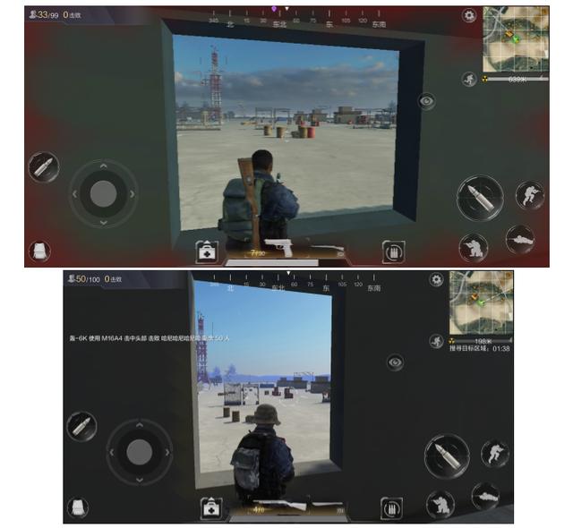 (上为华为麦芒6极光蓝吃鸡画面 下为iphone 8 plus吃鸡画面)