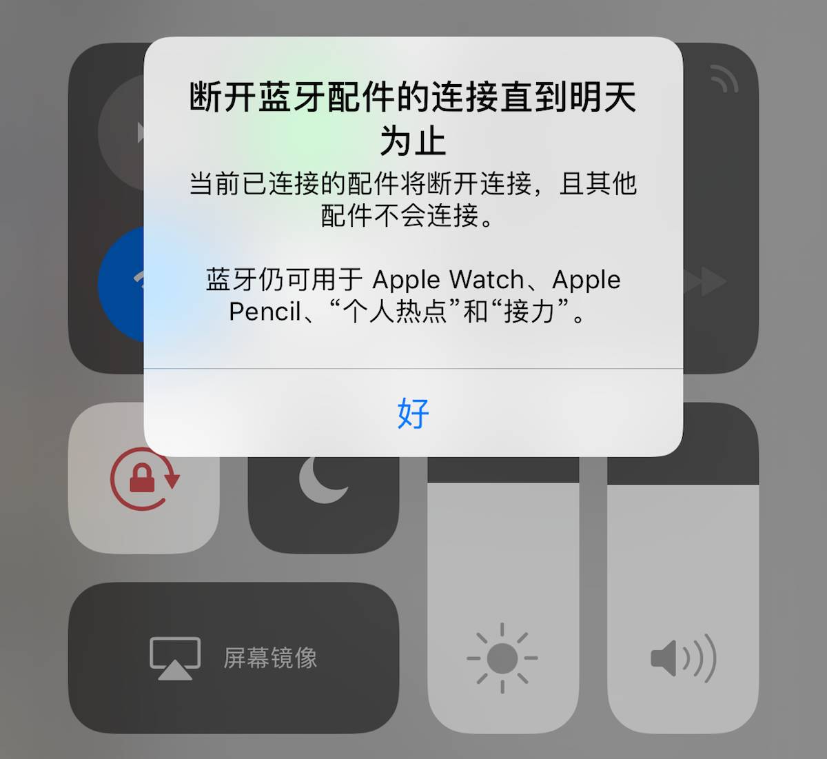iOS 11 已经不支持32 位的App 无法完全关闭蓝牙和WiFi 在iOS 11 里,由于需要蓝牙、WiFi 的场合更多了,因此,当你从控制中心关闭蓝牙或WiFi 时,系统并不会断开连接,而是提示「断开蓝牙配件的连接直到明天为止」。 此时,你依旧可以正常使用AirPods、Apple Pencil 等蓝牙配件——如果要完全关闭蓝牙跟WiFi 的话,需要进入「设置」中进行关闭。