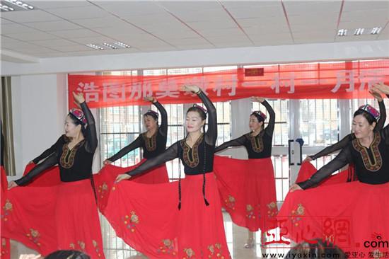 天山南北,瓜果飘香,丰收时节,歌声荡漾,演出在舞蹈《美丽的吐鲁番》欢快祥和的乐曲中拉开序幕,随后八十三团“舞动”文艺演出小分队给我们带来了快板《十九大精神放光芒》、蒙古舞蹈《呼伦贝尔大草原》、水兵舞《马背上的情歌》、现代舞四步造型《山谷里的思念》等形式多样、内容丰富的节目。该村戏曲爱好者胡秋霞也耐不住激动上台给大家带来一段河南豫剧《戏比天大》。活动在该村业余文艺小分队带来手绢舞《走西口》中圆满落下帷幕!