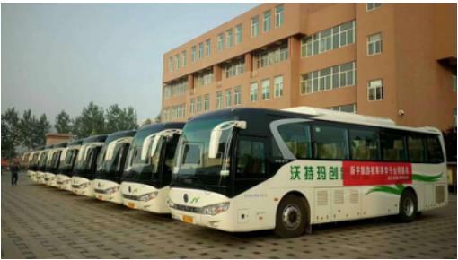 2017年6月7日-8日,在一年一度的高考期间,沃特玛创新联盟的23辆纯电动大巴穿梭于临汾市,接送同盛中学、平阳中学、新华中学、山西师范大学实验中学、洪洞县职业中学等五所学校的考生前往考场,为广大莘莘学子提供安全、舒适的乘车环境,助力高考。