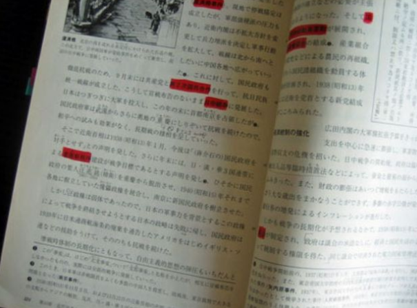 日本在教科书中,一直尽量弱化近代历史。在一本357页的历史书籍中,只有19页讲述了1931年至1945年间的事件。书中有一页讲了“九·一八”事变,而其中,关于南京大屠杀的部分,只用了一行注脚来描述。另外,还有一句脚注提及了“慰安妇”,但竟将其描述为“日本帝国陆军建立的军妓营”。书中,甚至连日本广岛和长崎遭投原子弹的事件,也只是一语带过。
