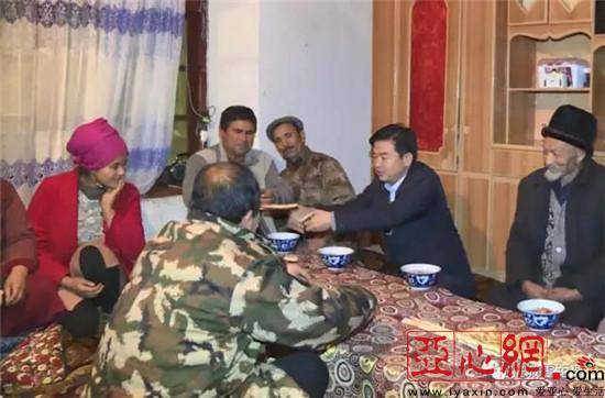 12月11日,时值自治区开展民族团结“结亲周”活动的第一天,霍城县委书记侯得录来到清水河镇二宫村他的亲戚阿瓦汗·买买提家,与他们同吃同住同学习,向基层群众宣讲十九大精神和党的各项惠民政策,密切党群干群关系,解决群众实际困难。