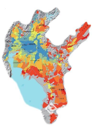 五华区范围内向西北方向扩展,覆盖莲华、普吉片区,同时向北以条带状延伸至茨坝。