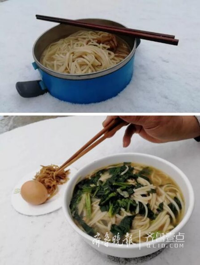 赏着雪景吃碗牛肉面,冷也温暖着