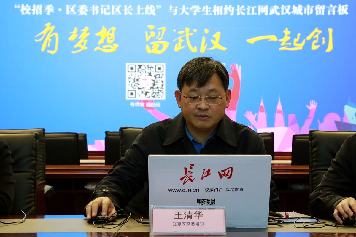 长江网12月18日讯(记者杨荣峰)18日上午9时30分,市网上群众工作部在长江网武汉城市留言板启动的“校招季?区委书记区长上线”互动活动第十三场开始了,江夏区区委书记王清华带领区委组织部(区招才局)、区人社局、区科经局、区城乡建设局、区交通运输局、区公安分局、区网上群众工作部等部门负责人,做客长江网(http://bbs.cjn.cn)回答大学生提问,网民可登录长江网长江论坛“今天我值班”板块提问。