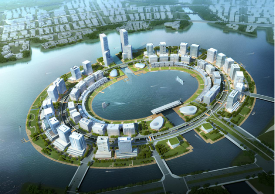 龙湖金融岛位于龙湖中部,约1.07平方公里,是未来郑东新区集金融办公、商业和旅游观光为核心的新型区域。该岛规划由双环44栋高层建筑围合形成城市建筑“巨阵”,以3.7公里宛如玉带的南北运河为连接,与同为双环由60栋高层围合的CBD中心,共同形成寓意吉祥的“如意”造型。
