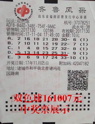 11月4日傍晚,刘先生吃过晚饭出门散步,路过诸城市第37078251号福彩站的时候就走了进去,本想机选5注号码出票后就离开,从口袋掏钱的时候不曾想带出一张上次机选的彩票,刘先生二话不说就让销售员先照打再兑奖……