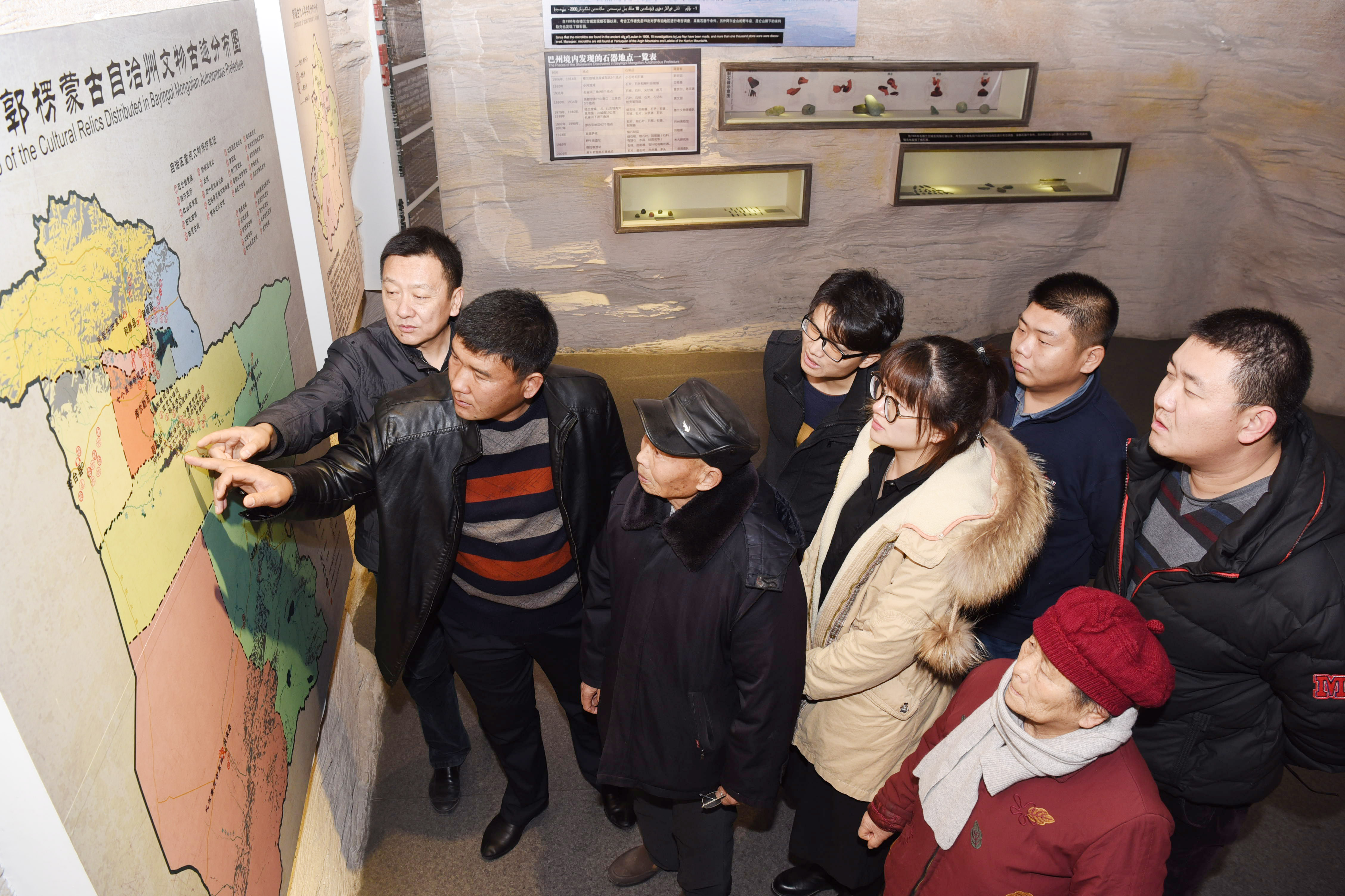 亚心网讯(通讯员 杨坤)12月14日,库尔勒经济技术开发区管委会干部赵存杰(左一)与同事带着结对亲戚在巴州博物馆参观。