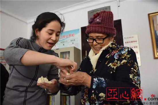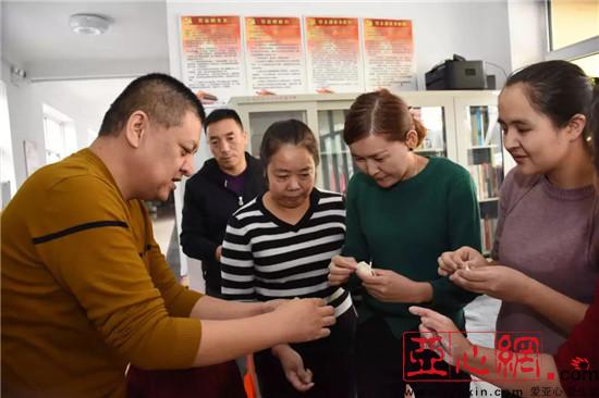 这边,李琼芳是主厨,带着塔拉米提·胡沙音包的是饺子。