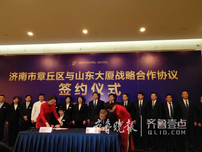 12月22日,济南市章丘区与山东大厦战略合作协议签约仪式在山东大厦举行。