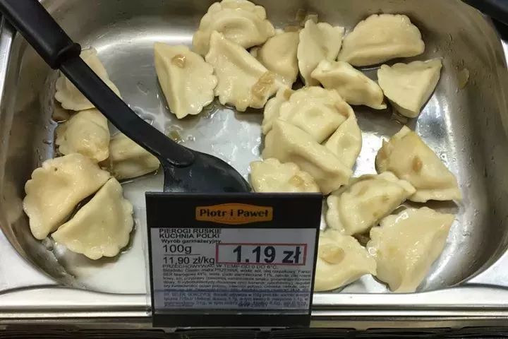波兰饺子,和中国的“角子”一样,也是世代相传的波兰传统食物。外观上跟中国水饺十分相近,长这样: