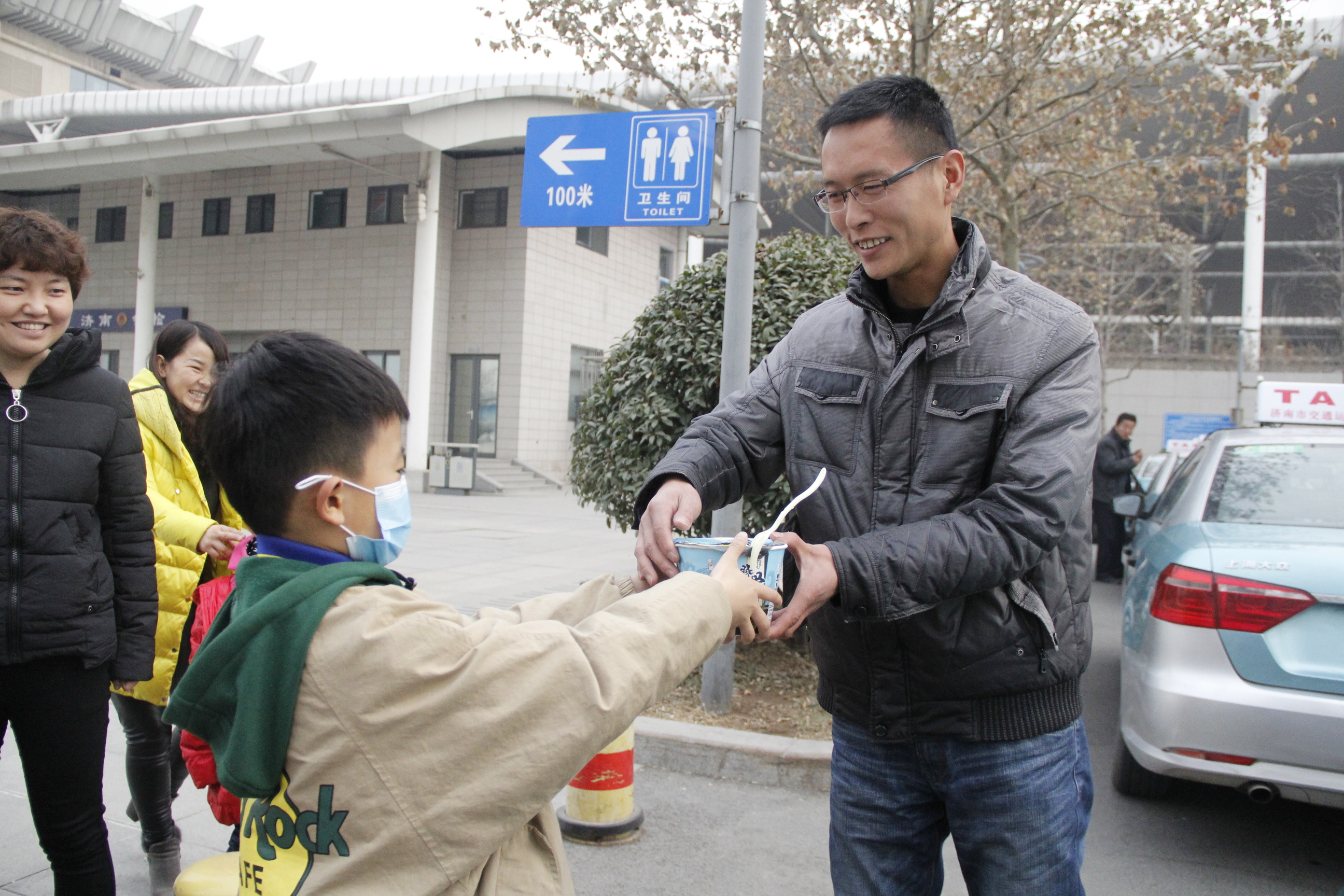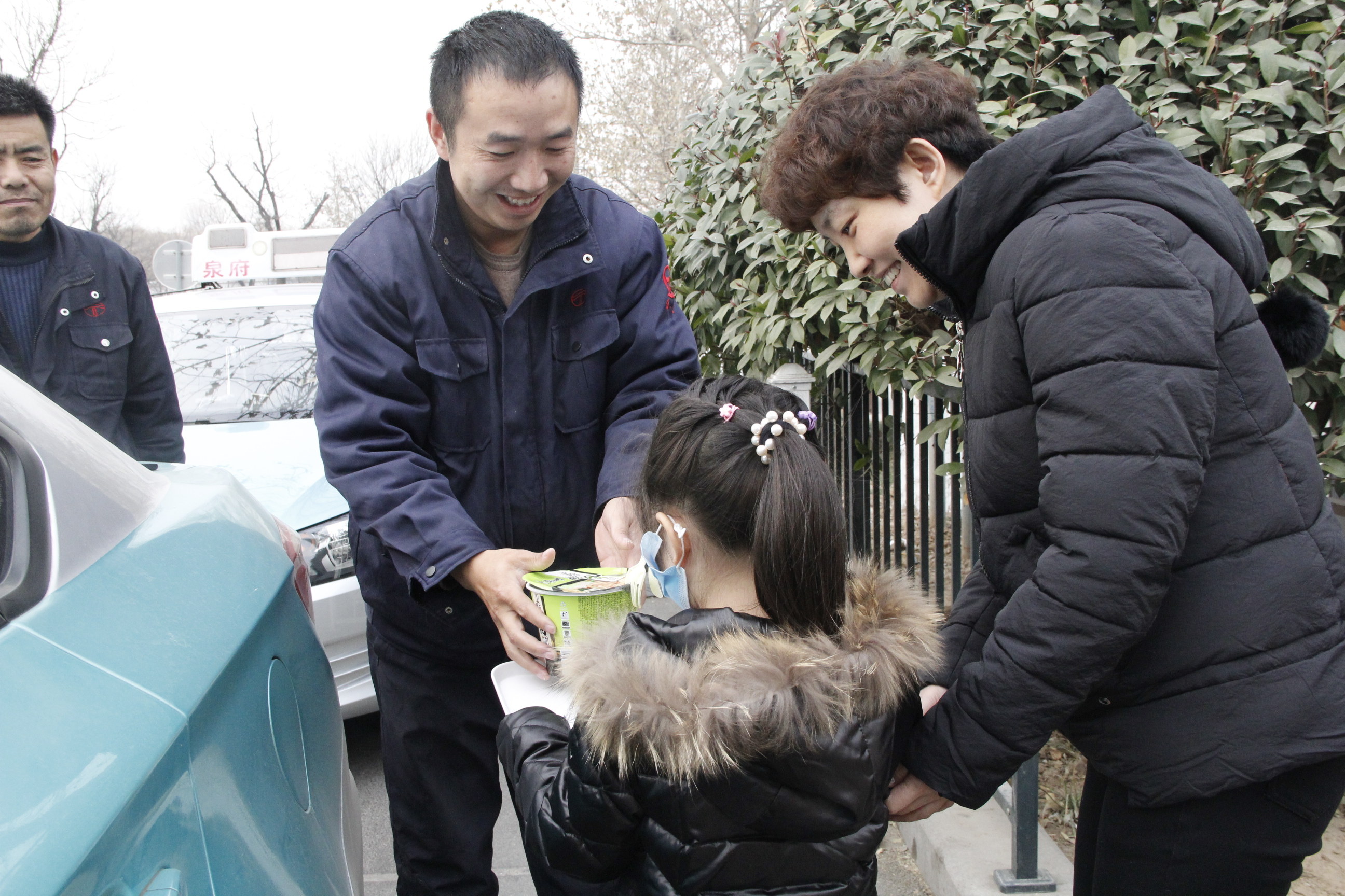 “叔叔,您辛苦了!这是我做的面,给您吃。”亲手做好的面,端到出租车司机师傅的手上,每个人的心里都被孩子们的善良美好打动着。