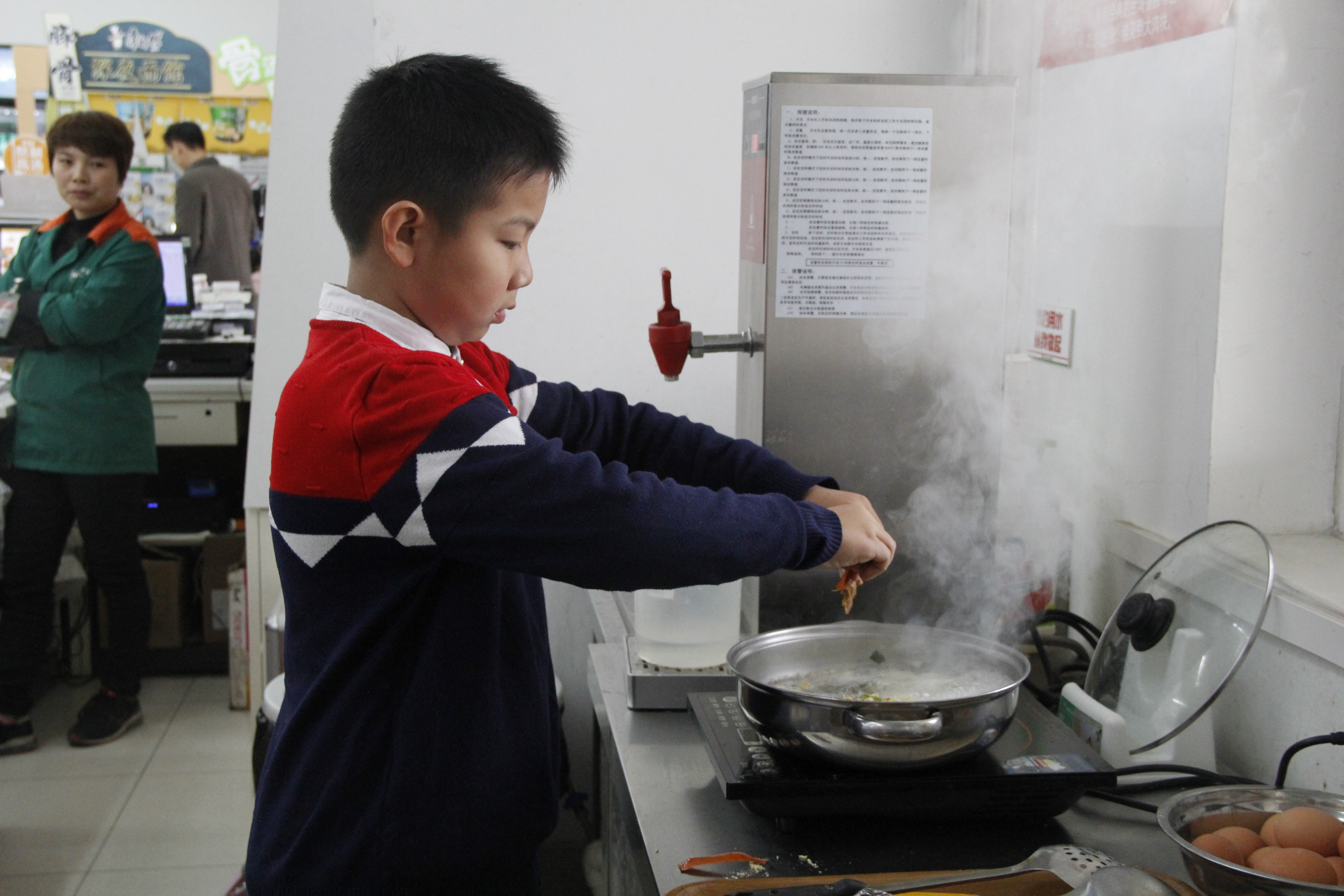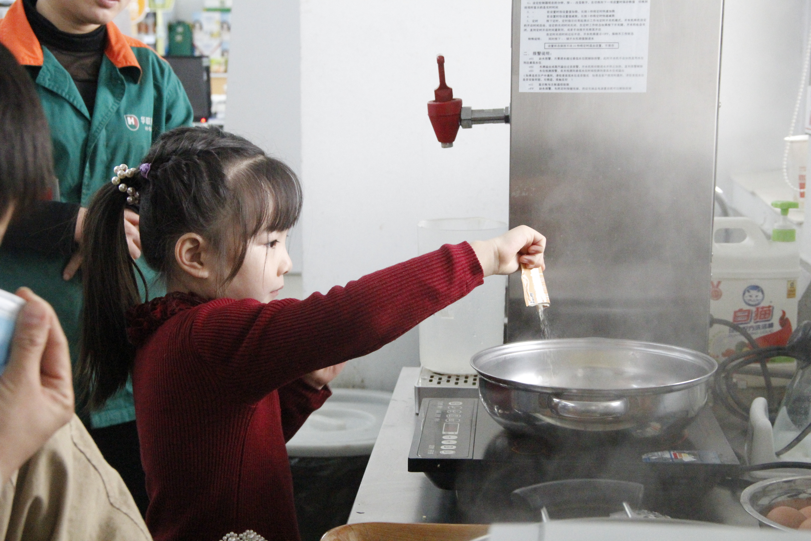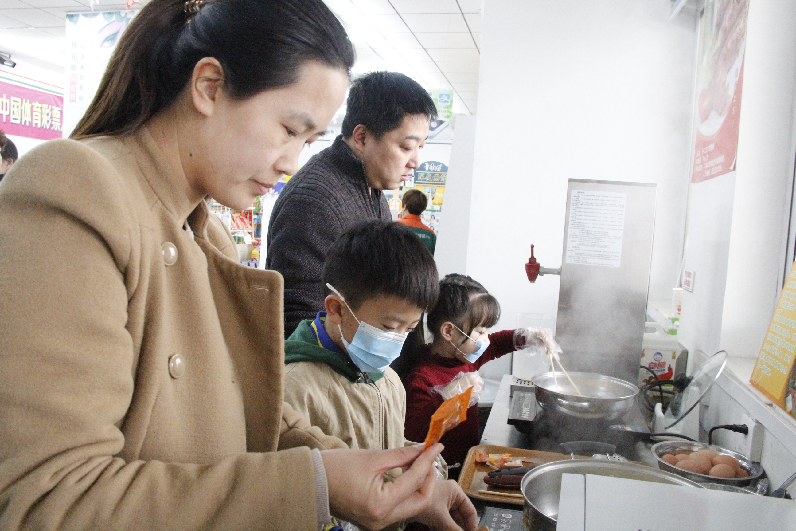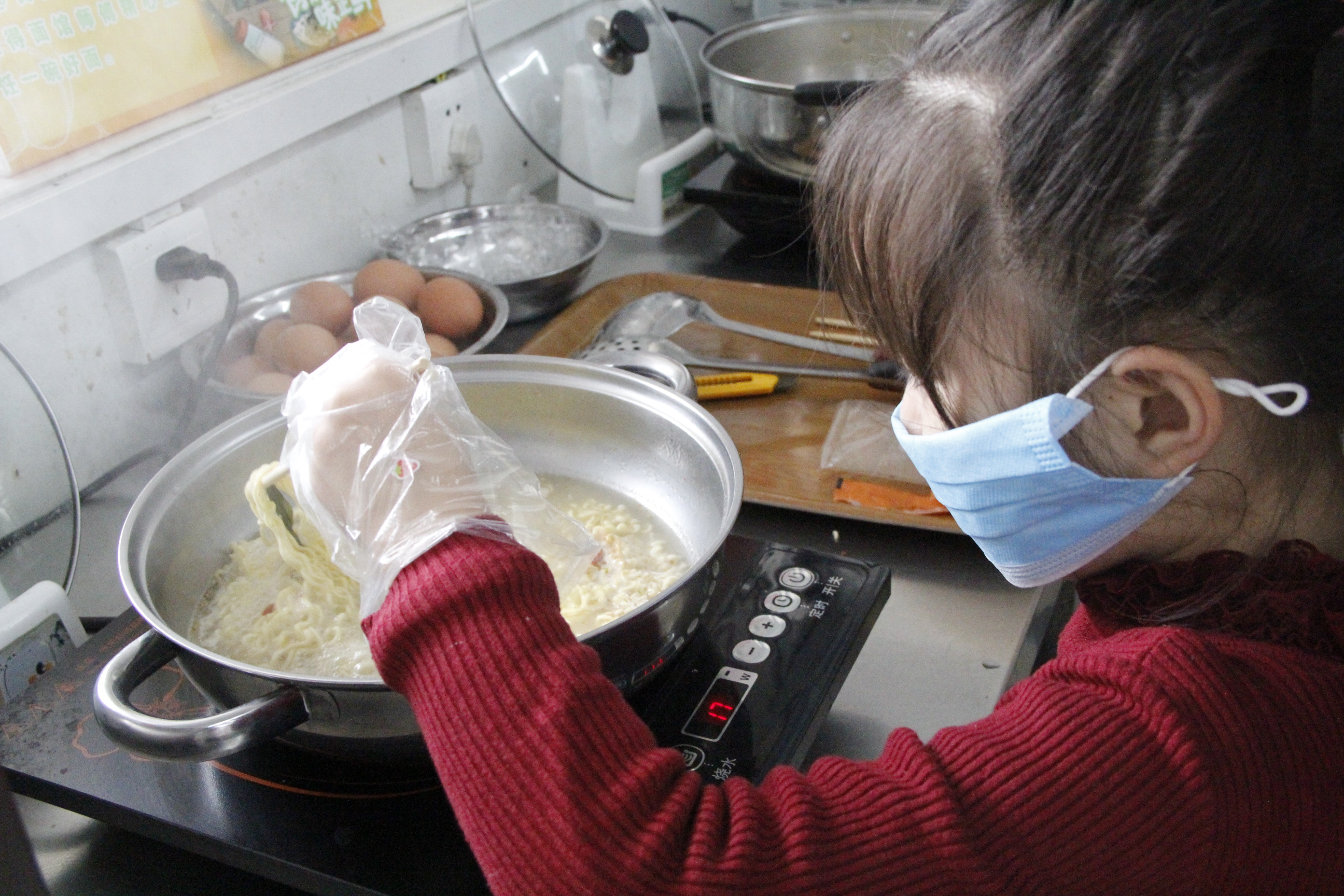 外面瑟瑟冬风,而现场却被小记者们的热情包裹着。拆包、煮面、放料,一步一步很是专业~
