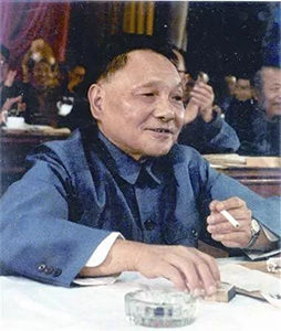 邓小平看到字条后,笑了笑,立即把烟熄灭了。