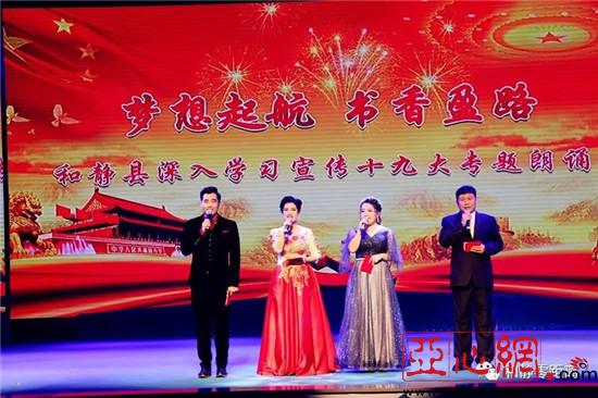 亚心网讯(通讯员 尤晓彤 巴音达来)为进一步宣传贯彻落实党的十九大精神坚定全县各族群众的文化自信,传承中华传统文化,在全县范围内营造良好宣传的氛围,12月22日晚8点,由县委宣传部、县文化体育广播影视局主办,和静县东归图书馆承办的和静县“梦想起航 书香盈路”深入学习宣传十九大专题朗诵会在和静剧院拉开帷幕,此次朗诵盛会是经过全县范围少儿、青少年、成人三场朗诵比赛激烈的角逐,好中选优,最终选送出11组优秀的参赛选手及特邀嘉宾进行的汇报表演,现场共500多名观众观看了本次朗诵会,还通过现场关注微信送礼活动与观众进行互动,活跃了现场气氛。